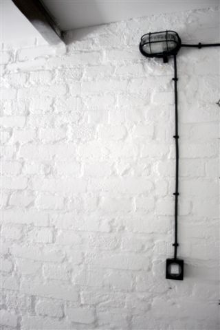 Kabel czarny jak smoła, haczyki do mocowania w ścianach, mocno stylizowane włączniki ;), oprawki za 7 PLN plus biała cegła = WOOOW! Jest super.