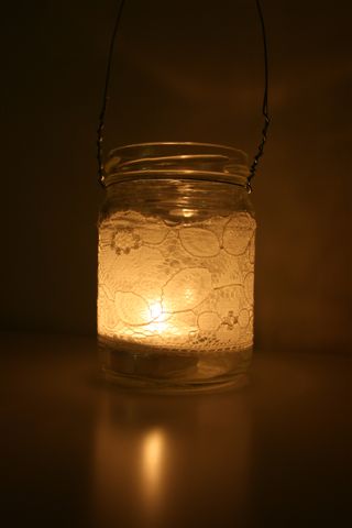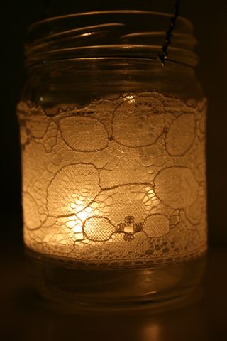 Materiały- słoik, cienki drucik, skrawki starych koronek, lakier bezbarwny.