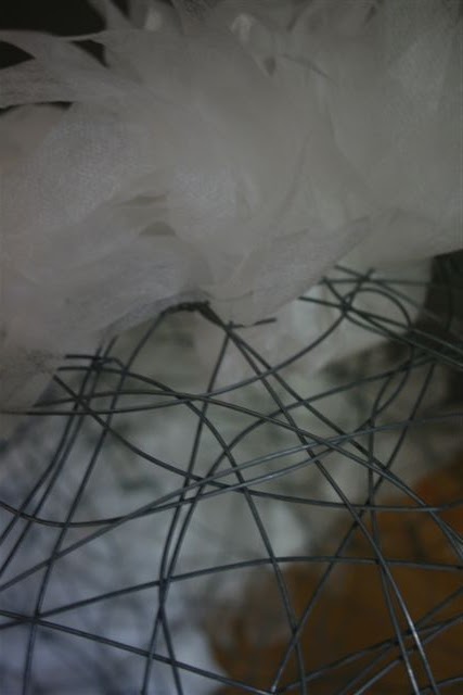 1) Z drutu zwijamy kulę dowolnej wielkości ( musimy najpierw zastanowić się, jaką funkcję lampa ma spełniać- oświetlenie wiszące, stołowe, podłogowe- i dobrać oprawkę/ lampkę którą umieścimy w środku. Ja bazowałam na oprawie lampy stołowej z IKEA ) pozostawiając miejsce na zamieszczenie oprawki. Kula nie musi być idealna. Moja na pewno nie była;)))