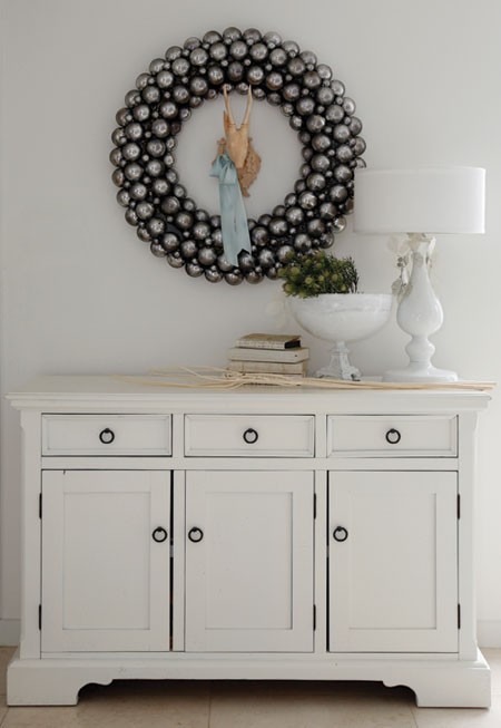 Powyższe zdjęcia dodatkowo ujmują mnie prostotą i nienachalnymi pomysłami- powiem szczerze, że te wszystkie aniołki, serduszka i mikołaje już mi dziurkami od nosa wychodzą. A taki wieniec z bombek- prosty, piękny, od razu wiadomo że świętą tuż tuż! Wystarczy zaaranżowac jeden kącik w domu, by wprawić wszystkich w uroczysty nastrój.