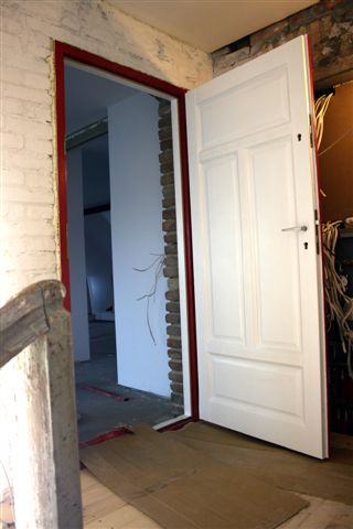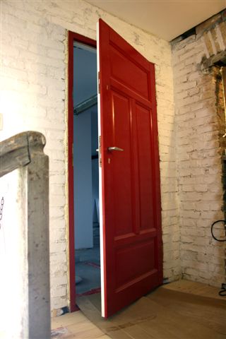 Dla zainteresowanych błyskawiczny przypomnienie/ skrót techniczny- kupiliśmy surowe, drewniane skrzydła wzorowane na oryginalnych starych drzwiach, które następnie obrobiłam i pomalowałam patriotycznie. A konkretnie wałkiem.
