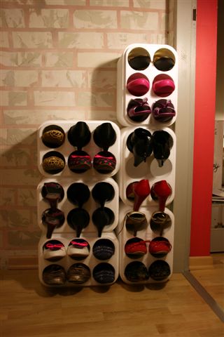 Recyclingowa kolekcja ze styropianowych pudeł powstała bardzo spontanicznie i ciągle się rozrasta; na pierwszy ogień mój faworyt ( a jakże ;), czyli rosnacy wraz z kolekcją stojak na buty.