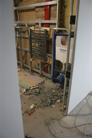 Towarzystwa dotrzymuje mu świeżo zamontowany stelaż do WC.