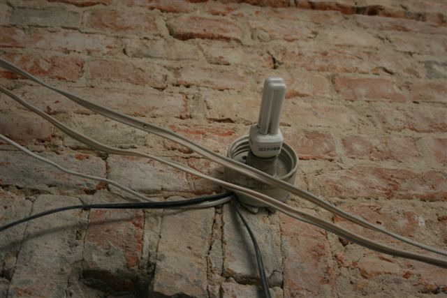 1) Z drutu zwijamy kulę dowolnej wielkości ( musimy najpierw zastanowić się, jaką funkcję lampa ma spełniać- oświetlenie wiszące, stołowe, podłogowe- i dobrać oprawkę/ lampkę którą umieścimy w środku. Ja bazowałam na oprawie lampy stołowej z IKEA ) pozostawiając miejsce na zamieszczenie oprawki. Kula nie musi być idealna. Moja na pewno nie była;)))