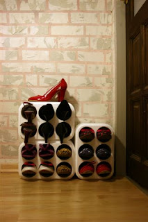 Recyclingowa kolekcja ze styropianowych pudeł powstała bardzo spontanicznie i ciągle się rozrasta; na pierwszy ogień mój faworyt ( a jakże ;), czyli rosnacy wraz z kolekcją stojak na buty.